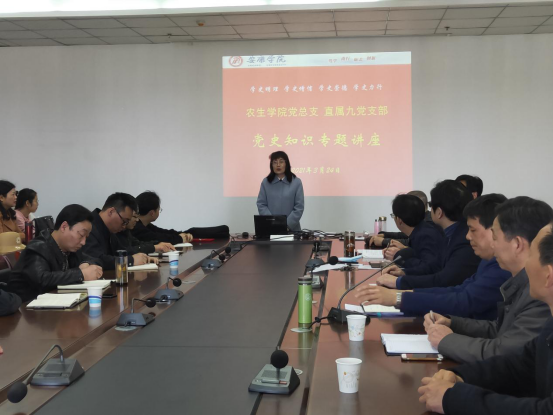 为深入学习领会习近平总书记在党史学习教育动员大会的重要讲话精神,认真贯彻落实党中央决策部署和省委、教育部、省委教育工委和公司党委的工作要求,深入推进党史学习教育,做到学史明理、学史增信、学史崇德、学史力行,学党史、悟思想、办实事、开新局,3月24日下午,公司党总支与直属九党支部特邀马克思主义公司纪安玲副教授在江北逸夫科技楼九楼大会议室举办党史知识专题讲座。纪委副书记、直属九党支部书记谢玉玺和全体党员,公司领导班子成员、全体教工及员工党员、预备党员、入党积极分子参加了学习。会议由公司党总支书记张纪生主持。