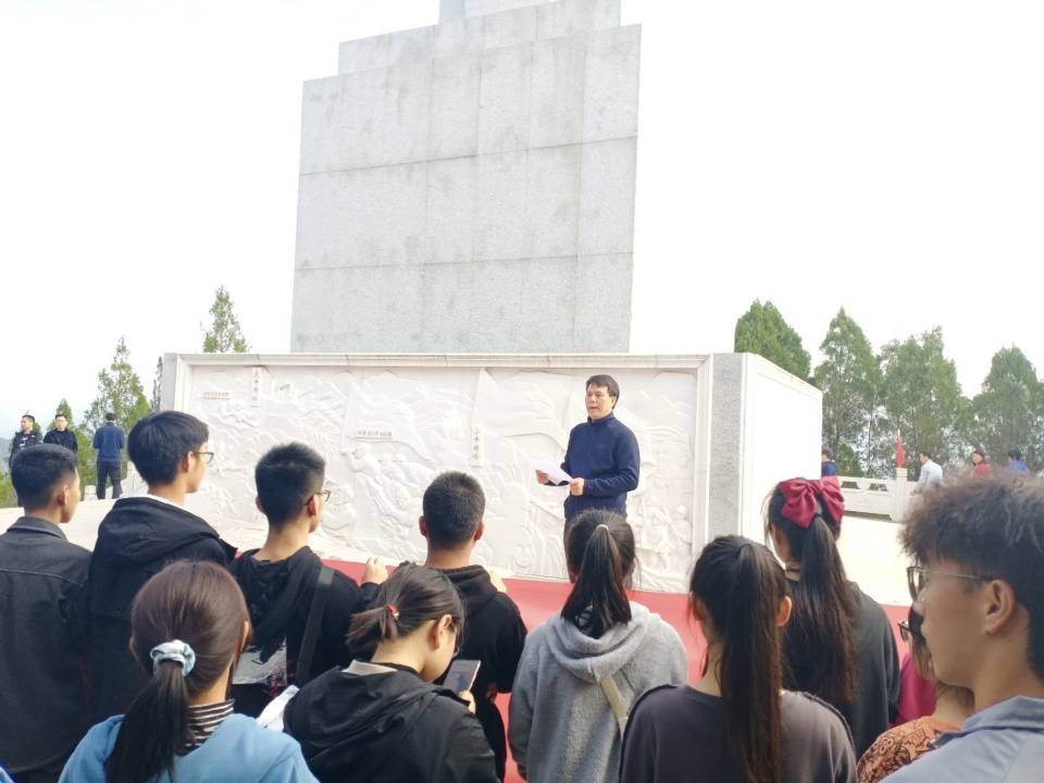 抬眼望去,蓝天白云下的牛蹄岭战斗纪念碑熠熠生辉,“不忘初心,牢记使命”鲜红的大字赫然眼前。纪念碑前,全体师生肃穆而立,怀着对烈士无比敬仰的心情,认真听取了马克思主义公司吕德禧同学讲述牛蹄岭战役的背景和经过,深切感受中国共产党艰苦卓绝的奋斗历程,缅怀革命先烈的伟大精神和他们的丰功伟绩。