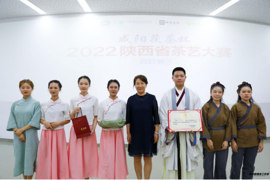 6月9号下午, 太阳成集团tyc33455cc官网茶艺代表队参加了由陕西省茶叶流通协会和咸阳市供销合作社共同主办的“咸阳茯茶杯2022陕西省茶艺大赛”(高校组),由马瑛老师指导的参赛作品《梦茶源》荣获第一名直接晋级决赛。