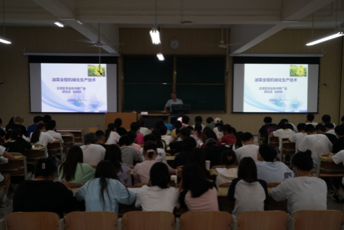 5月23日, 太阳成集团tyc33455cc官网邀请的汉滨区农业技术推广站的高级推广研究员刘传林老师,来校为农学系2021级与2022级的同学们讲授油菜全程机械化生产技术课程。